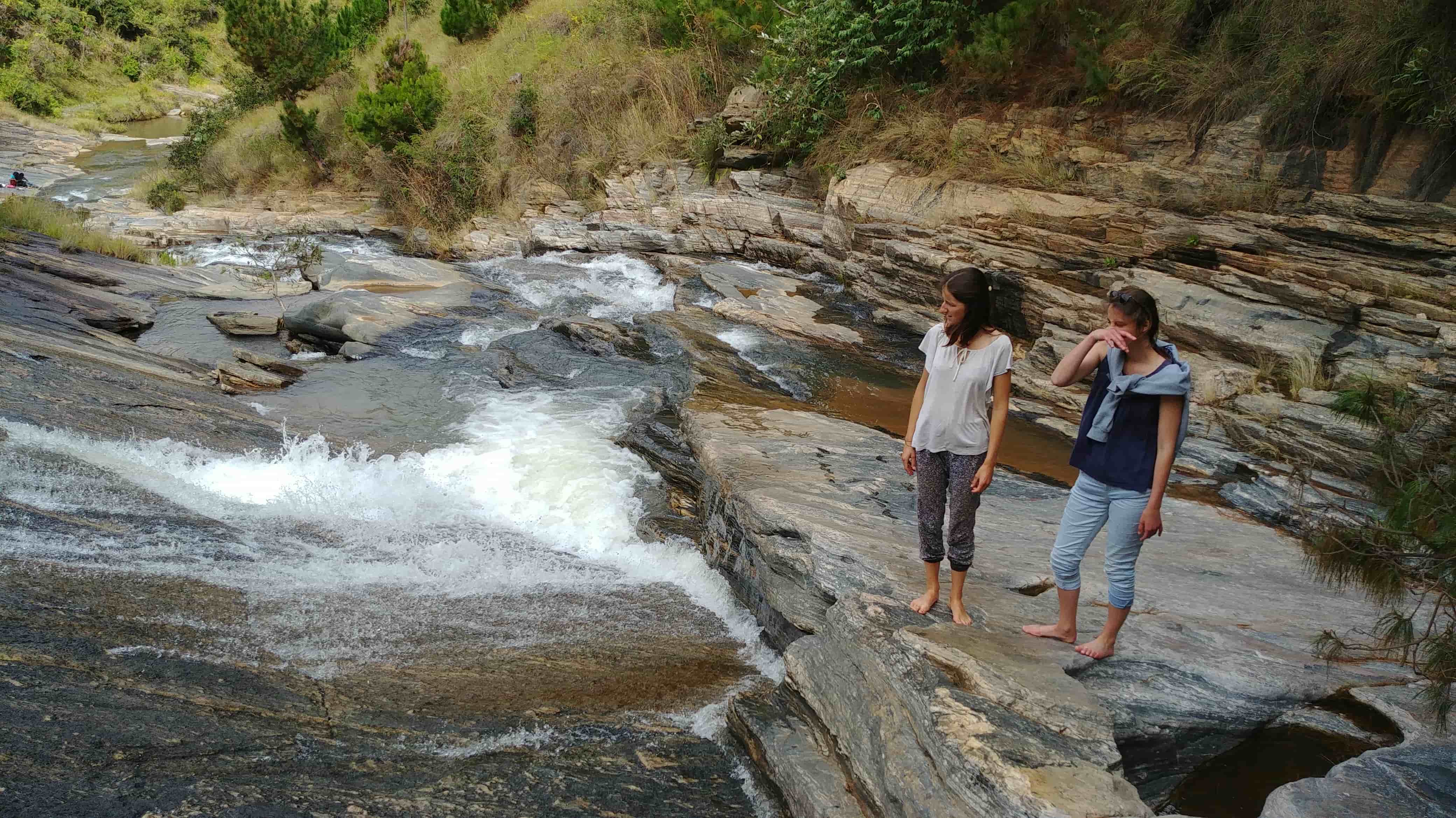 Le lieu de notre visite est bien connu de la communauté. Il s’agit d’une petite rivière, qui tombe en multiples chutes d’eau dans la région. Elle ressemble à un large torrent de montagne qui rebondit sur les rochers. Mais comme je manque de mots pour vous la décrire, et qu’une photo vaut mieux qu’un long discours, je vous propose d’admirer par vous-même.